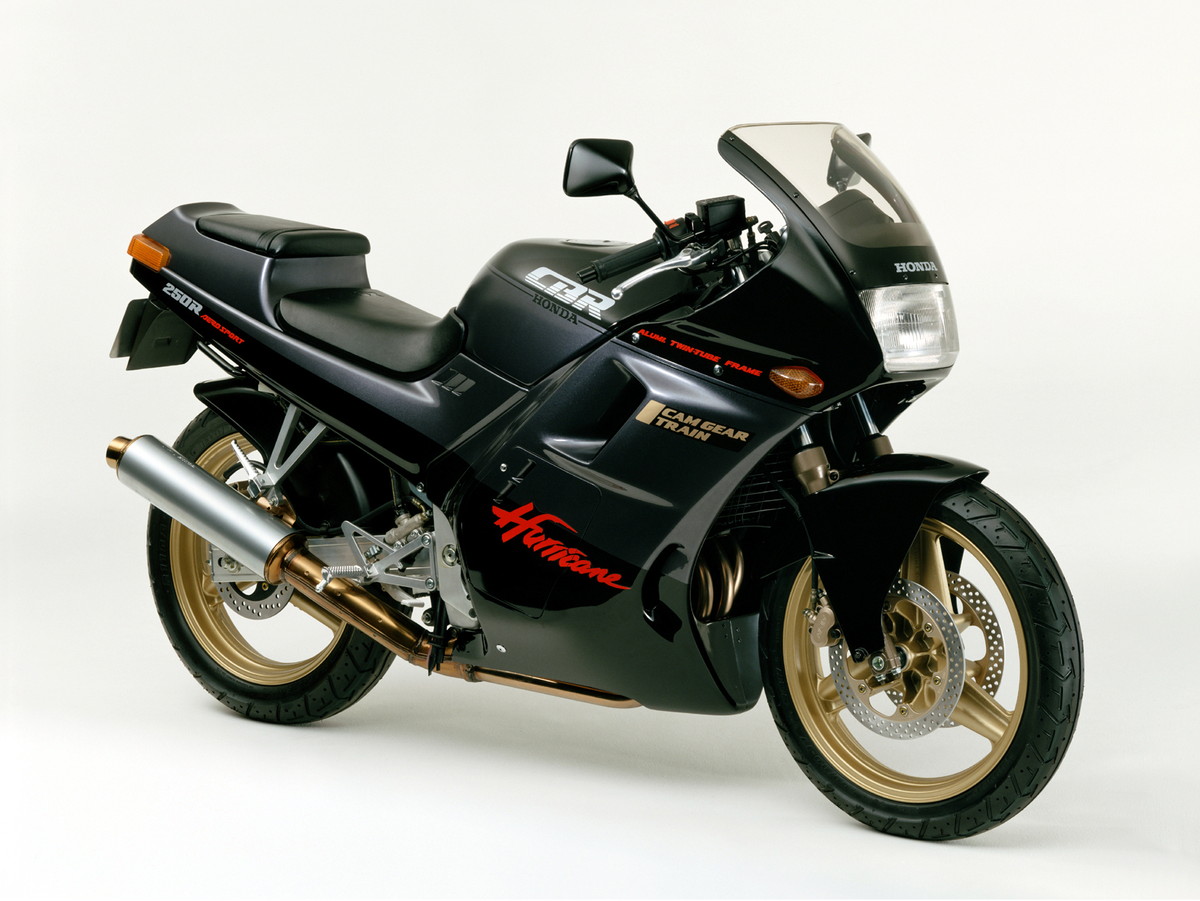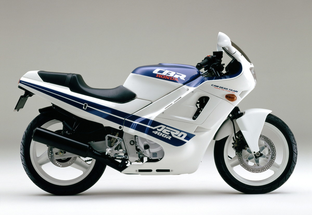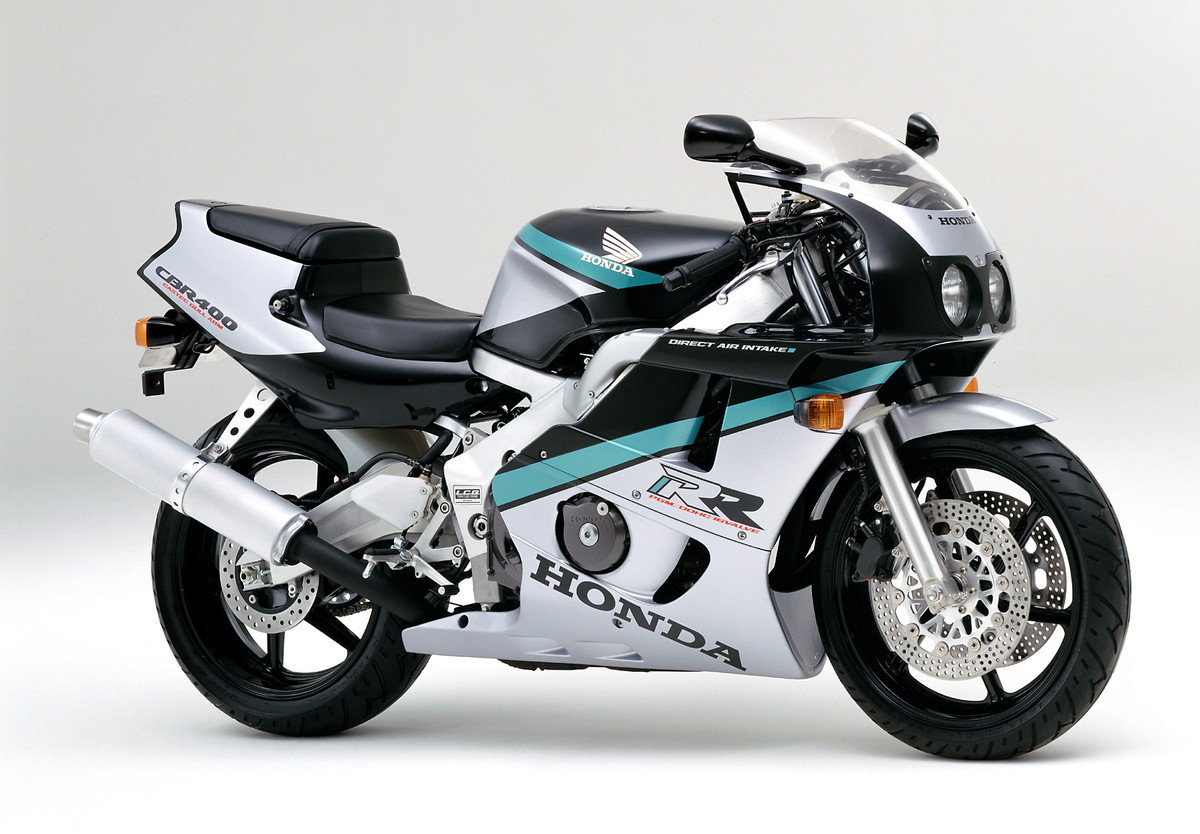 CBRシリーズには400ccクラスのマシンも存在しました。こちらは当時人気だった「TT-F3」という、市販車2スト250ccと4スト400ccクラスをベースとするマシンで競われたレースでの勝利を目指し、開発されたマシンです。ルーツとなるのは、1984年に発売された「CBR400F F3」というモデル。「CBR400Fエンデュランス」にフルカウルを装備した特別仕様車でした。空冷ながら「REV(Revolution Modulated Valve Control)」と呼ばれた低回転では2バルブ、高回転では4バルブが作動するエンジンを搭載し、最高出力58psを誇ります。