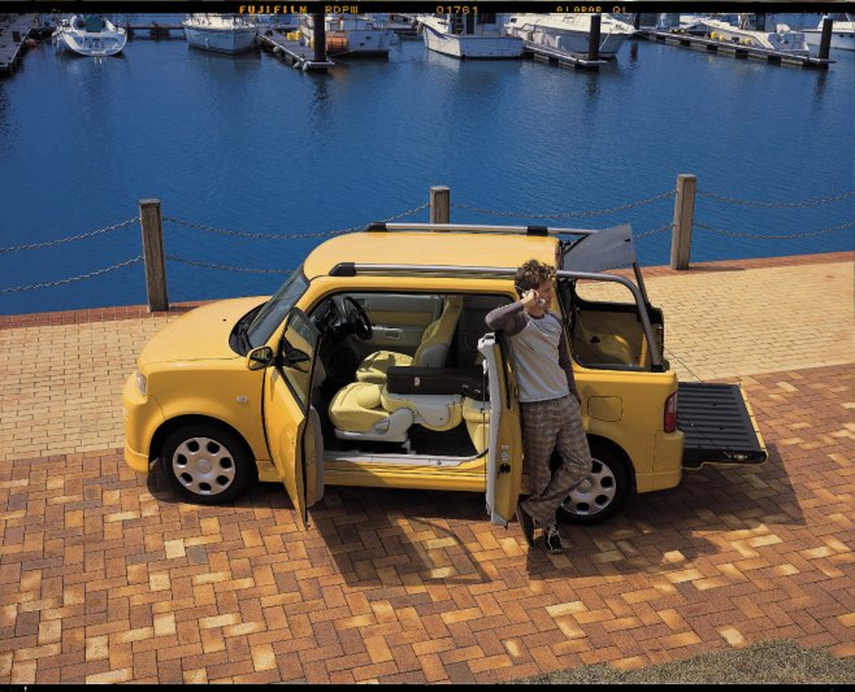 2000年に登場したトヨタのハッチバック、bBの派生モデルで、リアの荷室部分を切り取りピックアップトラックのようにしたオープンデッキに。bBは悪っぽい雰囲気を強調していましたが、同じフロントフェイスでもオープンデッキは太陽の下が似合う陽気な雰囲気が漂います。