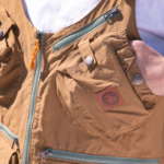 バックポケットは止水ファスナーになっておりタブレットだって収納可能な大きなポケットがついています。100%ストレッチポリエステル素材を使用しているため快適さと撥水性も◎。レトロな見た目ながら現代的な収納力と機能性も兼ね備えたハイブリッドなベストです。