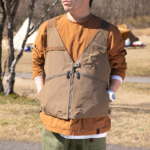 F/CE.のカバンで使用されているパーツを使うなど、ブランドの物作りに対するこだわりが詰まっており、ミリタリー色の強いグレネードベストながら品のある仕上がりに。シンプルなスタイリングに合わせるのがおすすめです。