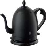 カップ1杯分を約60秒、1リットルなら約5分で沸かせる電気ケトル。沸騰後1時間経っても約70度までしか下がらない高い保温力を備える。細長い注ぎ口は、外観上の美しさだけでなく、注ぐ湯量を調節しやすい。重量は680g