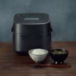 同社炊飯器のフラッグシップモデル。従来モデルより強火での加熱を約25秒(3合炊飯時)長く維持するため、お米をしっかりと対流させハリのあるご飯を炊き上げる。凹凸が少ないオールブラックの外観で、落ち着いた佇まいだ。