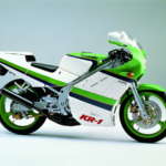 独自路線を歩んでいたカワサキも、レプリカブームの熱を無視できなくなり、1988年にリリースしたのが「KR-1」です。個性が強すぎた「KR250」の反省からか、アルミのツインチューブフレームに、並列2気筒の2ストエンジンを搭載した非常にオーソドックスな構成のマシンでした。エンジンにはバランサーを内蔵し、フレームに沿うほど前傾させてラバーマウントするという方式で、振動が少ないことが特徴でした。