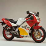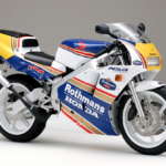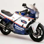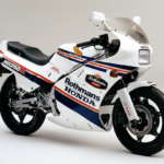 1987年には4スト400ccクラスの「VFR400R」にもロスマンズカラーのマシンが登場します。ロスマンズ・ホンダは世界耐久選手権にも参戦していたので、こちらはそのワークスマシン「RVF750」のレプリカカラーですね。