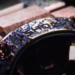 ▲ベゼルの独特な凹凸は、鋳物を作る際に現れる鋳肌を表現したもの。二重のIP加工を生かし、独特のブルーの色合いで浮かび上がらせている
