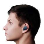 ▲人間工学に基づいた耳の3点で支える設計で、高いフィット感と安定した装着感を実現。ハンズフリー通話にも対応する