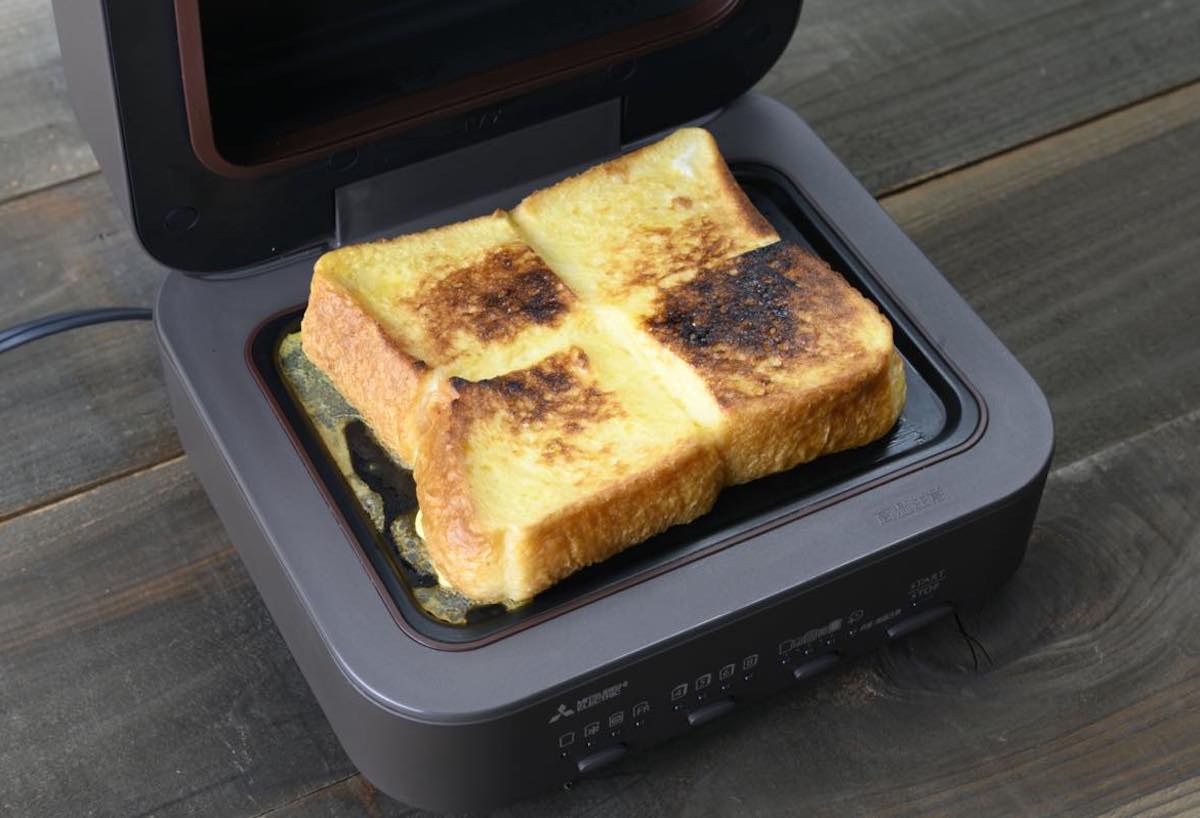 食パンの水分を庫内にしっかり閉じ込めて焼き上げる「三菱 ブレッドオーブン」は、1枚焼きという珍しい仕様だが、耳まで柔らかく仕上がるのが特徴。また、フレンチトーストモードを搭載するなど、朝食以外のシーンでも使える。