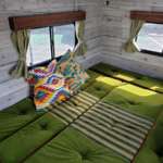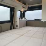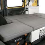 ▲リビングエリアは、マットを置くだけの簡単セッティングで、フルフラットのベッドレイアウトになる