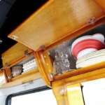 ▲軽量木材で作られた吊り下げ収納庫。両サイドとリア側にあって、旅の小物をたくさん保管できるのが◎