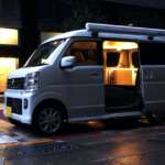 大型の高級キャンピングカーを製造するメーカーが、その技術を惜しみなく投入した軽キャン。曲線を取り入れたエレガントな家具に、計算されたライティングが心地良い。コンパクトでも、妥協を許さず高品質を求める人におすすめできる1台。