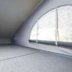 ▲ポップアップルーフを上げ、オプションのカーテンを装着すれば、完全にプライベートな個室が完成する