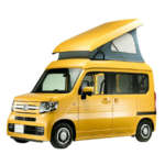 ホンダN-VAN最大の特徴である助手席後ろのピラーレスを活かして、広々としたベッド展開を可能にしたモデル。ホンダアクセスとのコラボモデルを手掛けるメーカーだけに、純正品のような仕上がり。純粋なN-VAN好きも納得の軽キャンだ。