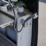 ▲延長できるシャワーヘッドをクルマの外に向けて装着できるので、アウトドアでの利用にも重宝する