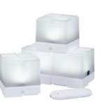 ブロックみたいに表面の四角い溝を利用して組み上げられるLEDランタン。単体で小さなライト、組み合わせれば大きなライトとなるのがおもしろい。光は白色、暖色、ゆらめきの3種類で強弱の調整も可能。リモコン付きでまとめて点灯・消灯できるのも便利。