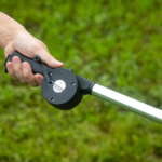 釣り竿のような形のブロワーです。ハンドルあたりはポリプロピレンですが先端はアルミ製なので熱にも強い設計。