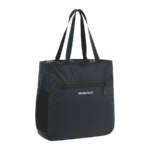 75デニールのコーデュラリップストップナイロンを生地に使用したトートバッグ。引き裂き強度・耐摩耗性に優れており、一般的なポリエステル生地に比べ柔らかい触り心地が特徴。ナイロン自体の撥水性に加えポリウレタンコーティングを施しているので浸水もしにくい。重量:200g、収納サイズ:16×21cm、容量:30リットル