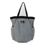 アウトドアやタウンユースなど、どこでも使いやすいシンプルなトートバッグ。開口部はドローコードで閉められ、中身が見えたり落下したりする心配もナシ。折り畳み傘やペットボトルが入る右サイドのメッシュポケットのなど、計3つのポケットを備える。重量:181g、収納サイズ:25×17cm、容量:21リットル