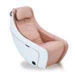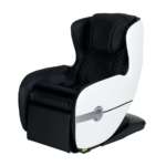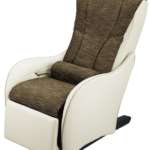 ▲洗練された流線型のデザインを持つマッサージチェア。 体を包み込みながら、心地良く癒してくれる