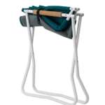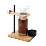 無垢のタモ材のベースプレートに、ジェラルミン製のテントポールを差し込んで使うコーヒードリッパー。ドリップヘッドは上下左右に動かして自在に調整可能。21cmの高さまで対応するため、マグカップはもちろんマグボトルにも直接ドリップできる。収納袋付き。