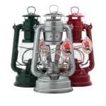 丈夫で長く使えるドイツ製のオイルランタン。重厚感のあるフォルムに、パウダーコーティング加工のカラーリングを施した注目モデル。LEDのように明るくはないが、趣のあるやわらかな光とリアルな炎の揺らぎを楽しめる。灯油が使える点も便利。Φ15×H26cm