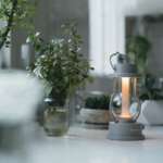 部屋使いに最適なシンプルデザインの防滴LEDランタン。ダイヤルを回すと明るさを変えられ、それに応じて光の色合いも変化。ベッドサイドや常夜灯としても使える暖色の灯り、読書灯としても十分な明るさの温白系の灯りに切り替えられる。W11×D10.3×H24.8cm