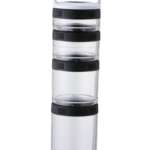 本来はパウダーやサプリメント、スナック類をアウトドアで持ち運ぶための携帯用ケース。密封性が高く、食材の匂いが外に漏れないため自宅でも安心して使える。サイズが異なる4つのケースを上下に連結でき、縦長フォルムで場所をとらずに収納可能。Φ5.8×H23cm