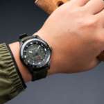 さらに質感の高いセラミックベゼルと軽量なチタンケースは、快適な装着感を実現。ミリタリーテイストのベルトは超高強ナイロン糸を使用したGAIFU採用でタフな仕上がりに。