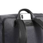 ▲背面の上部にスマホポケットを搭載。電車内など提げて持っている時に役立つ