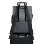 ▲キャリーケースにセットアップ可能。出張や旅行時に◎。この機能も大容量バッグならではと言える