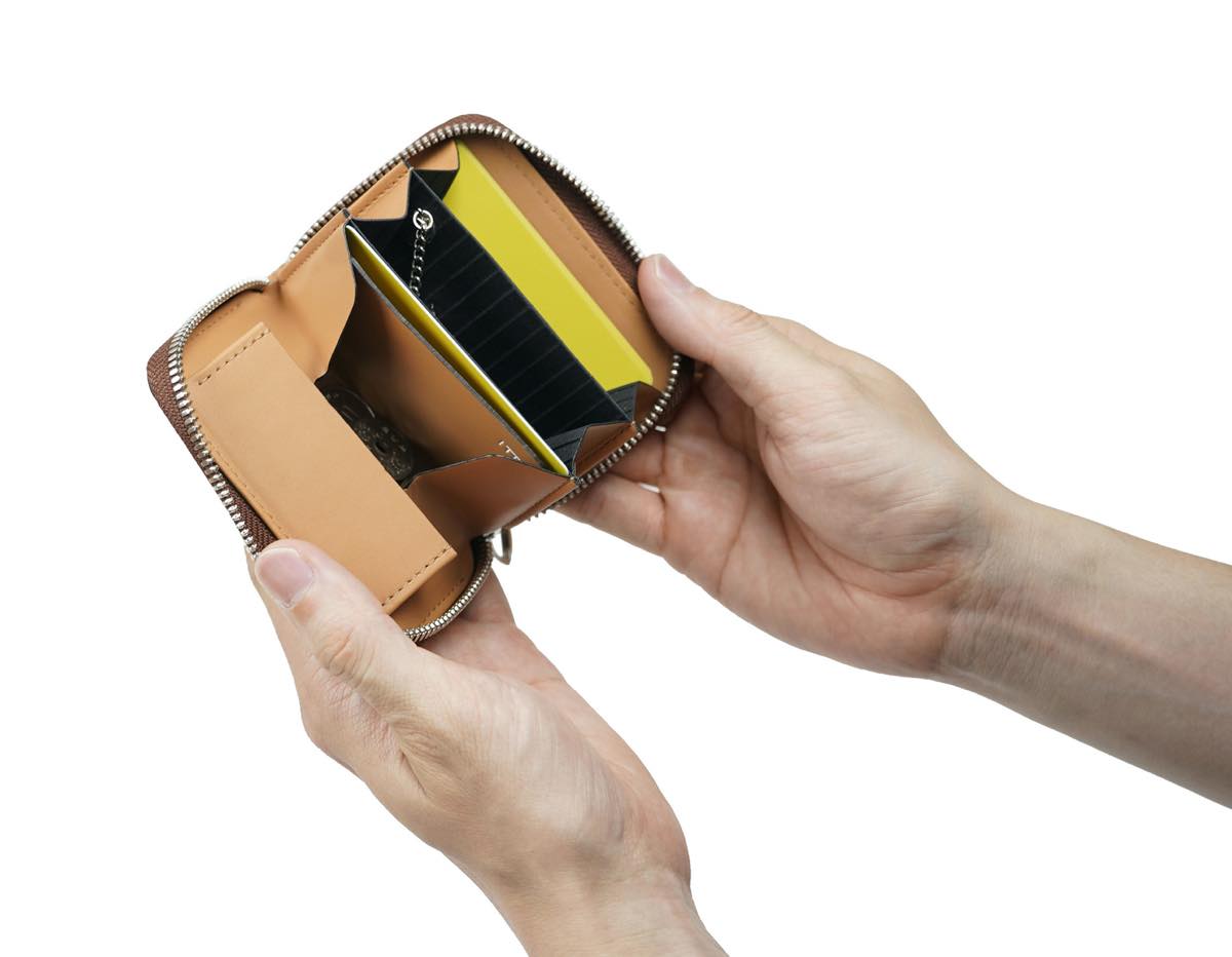 2. 財布を開くとカードポケットが自然に立ち上がる設計に!