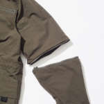 季節に合わせて変形可能なコンバーチブル仕様の袖は、半袖で着用してレイヤードファッションも楽しめる汎用性もアリ。また、ウエストや裾のコードで好みのシルエットにも調節可能です。オーバーサイズのデザインなので、ジャケットの上から羽織るのもオススメ。カラーはオリーブ、ブラック、トープの3色展開です。