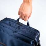 ▲背面にはキャリーオン用のストラップが付き、ビジネススタイルにも対応する。手持ちの際に便利な上部ハンドルも使い勝手がよい