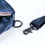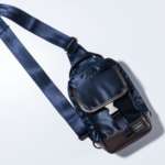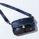 ショルダーストラップはバッグ本体に合わせて光沢感があり、スタイリッシュな印象を与えるだけでなく、デイリーユースに耐える丈夫な作りになっている。サイズはW250×H170×D80mm