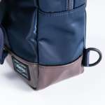 フロントポケットの一部にもシックなブラウンのPVC加工生地を使い、洗練された印象に。また金具はシリーズ共通でニッケルメッキを施した金属パーツを採用。より一層の大人っぽさを引き立たせているのがポイント。サイズはW290×H420×D160mm