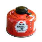 ▲イソブタン80%と低温でも気化しやすいプロパン20%を混合した専用ガスカートリッジが、寒冷地でもバーナーの性能をしっかり引き出してくれる。容量110gの「イソプロ110」と226gの「イソプロ227」の2種類があり、ポット内に収められるのは110サイズの方になる
