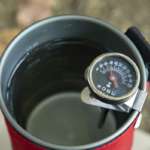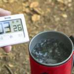 ▲プラスチック製のフタをポットに取り付けて、バーナーにはめれば湯沸かしスタート。結果は3分26秒。あっという間に沸騰までいった。このスピードを山でも実現できるのはたしかに助かる。ポットにはカバーが付いているので、沸騰したお湯が入っていても問題なく持てる