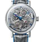 2006年に発表された、ふたつのトゥールビヨンキャリッジのみ可視化されていたモデルから文字盤を取り払い、メカニズムを磨き上げ、そのほぼすべてを鑑賞できるようにした超絶スケルトンモデル。ムーブメントの裏側にはパリ・シテ島にあったブレゲの工房が職人の手で彫刻されている。この美しさも格別。手巻き、ケース径46mm、プラチナケース。