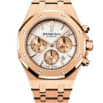 「ロイヤル オーク」の外装は、本来はステンレススティール。だがこのモデルはケースとブレスレットのほとんどの部分にサテン仕上げを採用することで、ゴールドでも落ち着いた上品なテイストを実現した。改めて基本デザインの良さを感じる贅沢な1本だ。ケース径38mm、自動巻き、ピンクゴールドケース&ブレスレット、50m防水。