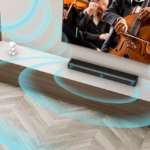 11基のクラスDデジタルアンプを搭載し、テレビの映像だけでなく、音楽やラジオなども迫力ある音声で聞くことができる。2基のドライバーを上向きに配置することで音の立体感も演出。Dolby Atmosに対応する。カラーはブラックとホワイトの2色。