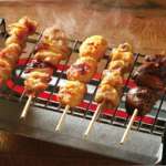 ▲1台で焼き鳥、おでん、炙りに熱燗が楽しめる。焼き鳥はじっくり焼いて、余分な油を落としてヘルシーに!