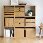 主張しない、やさしい風合いが特徴。未使用時は畳んでおき、書類が増えたら組み立 てるといった柔軟な使い方ができる。