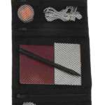 主に3つのポケットを備え、文具などを入れるのに便利。仕事する時だけサッと広げ、終わったら畳んで収納できる。約12×18cm