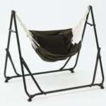手軽に導入できる自立式ハンモック。フレーム本体にベアリング式フックを採用しており、適度なスイング動作を実現。ハンモックチェアやハンガーラックとしても使える3WAY仕様。クッション付き。約W250×D86×H80.5cm