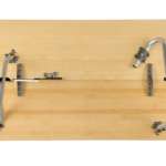 ▲2枚の天板の間に4本の脚が収まっており、天板を開くとシンクロして内側から脚が出現する仕組みになっている