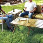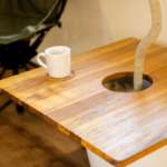 7. ワンアクションで開閉できる持ち運びにも便利な竹テーブル