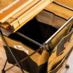 ▲簡単に折りたたむことができ、約5.5kgと軽量なので片手でラクに持ち運べる。ソト・ナカ兼用もアリ!