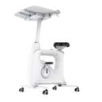 ガッチリと固定されたデスクを搭載したフィットネスバイク。デスクもイスも高さなどを自在に調節でき、スタンディングデスクとしても利用可能。負荷を8段階で切り替えて、ペダルをこぎながら仕事できる。