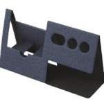 表面には文房具などを入れるポケット、裏面には書類などを入れる大型ポケットを備えた折りたたみ式のツールスタンド。上部にハンドルを備え、気軽に持ち運べるところも特徴。立てた状態で横から見るとA字型になり、中のスペースにも収納できる。