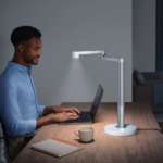 ヘッド、アーム、支柱の接続部がそれぞれ360度回転することで、4通りの照らし方ができるLEDライト。GPSに基いた独自のアルゴリズムにより現在地の自然光をトラッキングし、60秒ごとに色温度と明るさを調整できる。