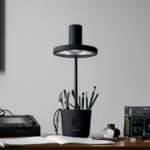 自然光に近い演色性と色の一貫性に優れた光で照らすライト。電源ボタンを押して回すだけで、明るさや色を調整可能。明るさのメモリ機能を備え、次に使う時に同じ明るさで点灯する。スマホの充電などに使えるUSBポート付き。